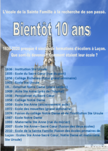 Cette collecte permettra outre de reconstruire une mémoire collective, de préparer l’anniversaire à l’automne 2020 et d’éditer une histoire des écoles catholiques de Luçon.