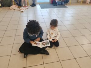 Une fois les enregistrements terminés, les deux classes se sont retrouvées pour que les grands lisent les albums enregistrés aux petits.
