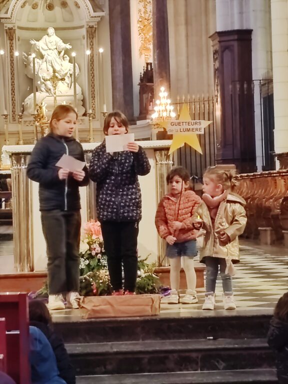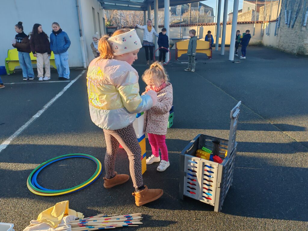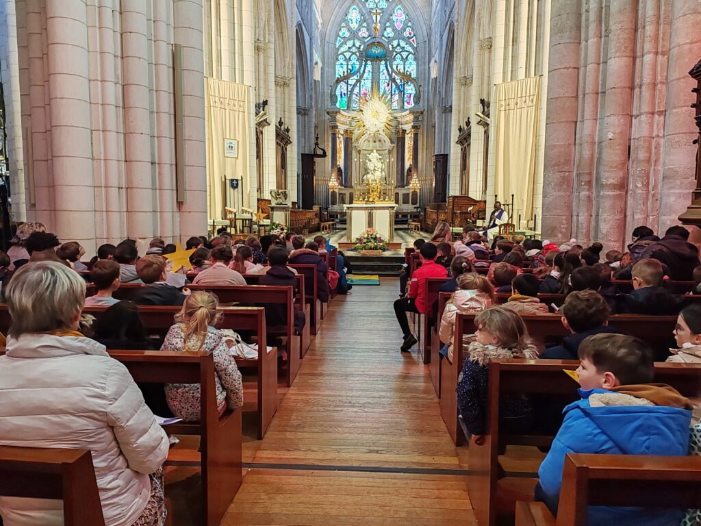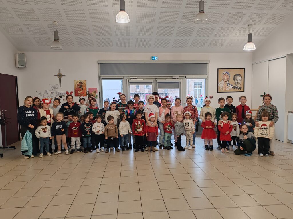 Nous avons aussi partagé la célébration de Noël qui a eu lieu à la Cathédrale. Les grands ont emmené les petits et ont pu chanter ensemble. Au retour, nous avons fait une récréation partagée afin que les Cm1 montrent des jeux aux TPS-PS.