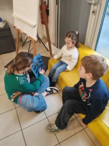 Une fois les enregistrements terminés, les deux classes se sont retrouvées pour que les grands lisent les albums enregistrés aux petits.