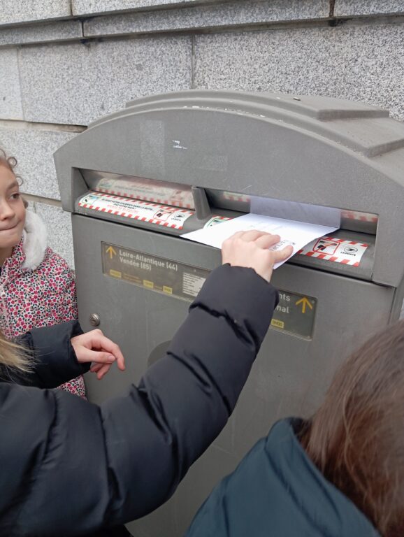 Ce projet fut aussi l’occasion d’apprendre à écrire sur une enveloppe : numéro et nom de la rue, code postal, nom de la ville. Certains ont aussi découvert le timbre et la joie de le coller (avec son drôle de goût !).