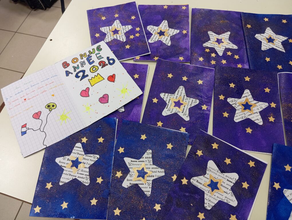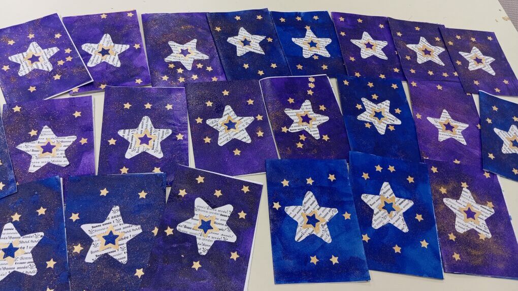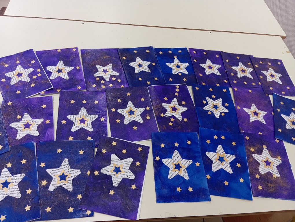 Ca y est ! Nos cartes sont prêtes à être expédiées ! Certaines ne vont pas très loin : à Luçon ou en Vendée. D’autres vont plus loin comme en région parisienne ou dans le sud de la France. Une carte de voeux va même jusqu’en Australie!